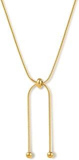 Julia Store 18K Gold Plated Stainless Steel Hypoallergic Adjustable Trendy Elegant Thin Snake Slider Necklace, Sparkly Rhinestone Ornament Charm Y Necklace Women Jewelry