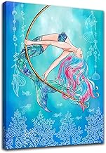 Swing Mermaid Wall Art Fantastic Ocean Abstract Canvas Pictures Blue Sea World Modern Artwork Contemporary Prints Framed for Home Office Kitchen Bathroom Bedroom Nursery Living Room Decor 20" x 28"