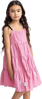lovely land girls pink dress with flower stitching and shoulder laces Casual Dress