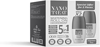 NANO TREAT 5 In 1 Formula Whitening Roll On Deodorant Set, Fragrance Free, 2 Pieces - 2 x 50ml
