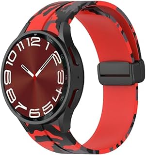 Compatible with Samsung Galaxy Watch 5 44mm | 5 Pro 45mm | 4 Classic 46/42mm Strap Special No Gap Design Silicone Sport Strap with Magnetic Closure (Red/Army)