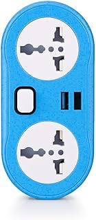 Power Extension Socket, Conversion Socket 2500W, 2 USB Charger, Power Switch, Auto 10A Max Charging, Overload Protection, Surge Protector for Home or Travel, Power Socket Wall, E-02 (Blue)