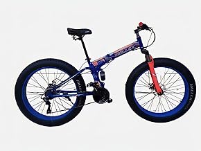RALLEX 26 Inch Folding Mountain Bicycle, Fat Tire Mountain Bike for Adults, 21 Speed Bicycle, Full Suspension Double Steel Frame, Double Disc Brakes MULTI-COLOR