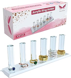 FAIRY DECOR Ring Holder for Jewelry - Acrylic Ring Display Organizer for Girls - Clear Ring Organizer with 6 Small Tower Shaped Rods Suitable for All Ring Sizes