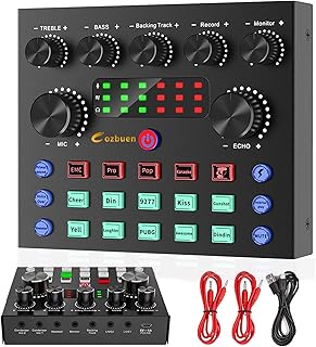 Cozbuen Mixing Table DJ External USB Sound Card, Interface Audio DJ Controller with Mixer Audio Voice Changer, for Streaming Gaming Karaoke Video Youtube