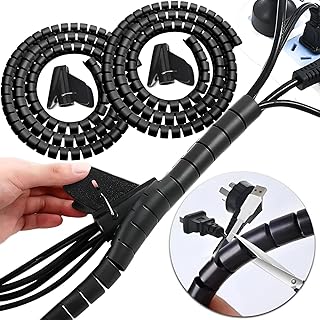 Cable Management - Keep Your Cables Tidy and Neat with 5 Feet Black Flexible and Expandable Cable Sleeve for Home and Office Use, Perfect for Computer and TV Cord Management (2 Pack)