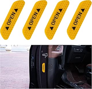SINGARO 4PCS Door Reflective Attention Sticker, Driving Reminder Sticker, Night Visibility, Car Decorative Accessories, Universal for Trucks, SUVs, Bicycles and Vans (Yellow)