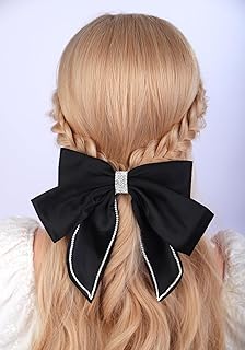 Wiwpar Vintage Black Bow Hair Clips Crystal Satin Large Bow Hair Ribbon Barrettes Styling Bowknot French Barettes Halloween Bows French Style Hair Accessories for Women Girls Christmas