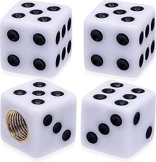 Kaber Egypt 2020 - Car Tire Valve Stem Cap Set - Dice Shape for Cars, Motorcycles, Trucks, Bikes - Universal Dust Cover - 4 Pieces - White