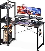 FurniFlex Computer Desk with Storage Shelves and Monitor Stand, 40-Inch Size, Black