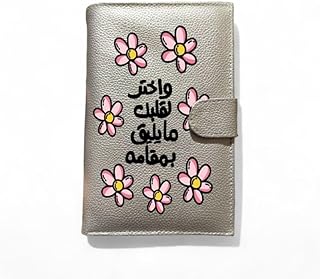 Leather wallet for women- Artificial leather- Silver- One sided printing- Motivational design-اختر لقلبك مقام يليق به- We print your gift