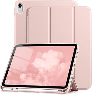 Elterazone Compatible with iPad 10th Generation Case 2022, Protective Case with Pencil Holder, Trifold Stand for iPad 10.9 Inch, Auto Sleep/Wake Cover, Slim & Lightweight (Rose Pink, 10.9)