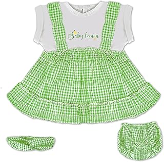 Pengweeny Sun Dress for Baby Girls – فستان أطفال بناتي صيفي مع بانتي وباندانا – Cotton Koresha – Green/Orange – Sizes 0M-3Y