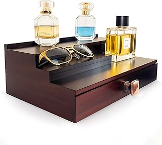 MIDIKRAF Cologne Organizer for Men -Cologne Stand Perfume Organizer,with Hidden Compartment Cologne Holder,Drawer Storage (Brown)