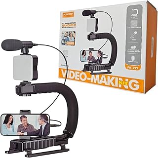 PK-777 5-in-1 Video Rig Kit – Smartphone U-Rig Stabilizer with LED Light, Cardioid Microphone, Tripod Grip, and Bluetooth Remote – For YouTube, TikTok, Vlogging & Filmmaking
