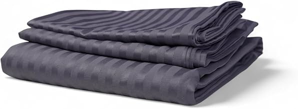 Fitted Sheet Set, Grey Striped, King Size 180x200cm with 2 Pillowcases, 300 Thread Count GG Bed and Bath Luxury