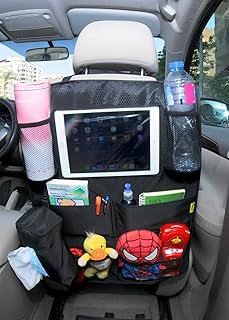 Car Seat Back Organizer PU Leather Practical Accessories - Tablet Pocket - 2 Large Mesh Pockets - 2 Large Pockets - 2 Cans Pockets with Tissue Case with Separate Hanger - 1 Piece - by KaberTrade