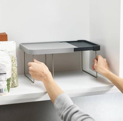 - Display a very practical space expanding rack with ease Multi-use organizer Super space saving that space underneath can be used for other purposes Stacking jar of condiments, cups and dishes in the kitchen to stack shampoos and creams in the bathroom Three durable metal posts