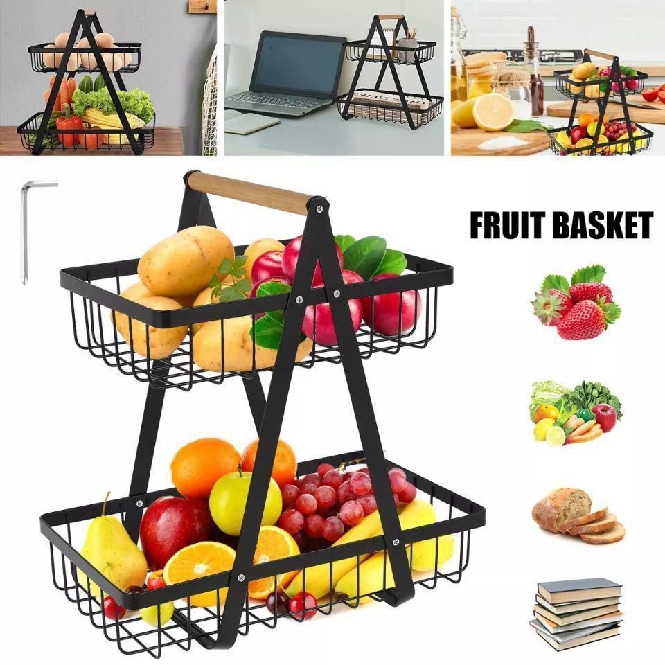 - يوفر التصميم ذو المستويين مساحة إضافية لتخزين كمية أكبر من الفواكه دون الحاجة إلى مساحة كبيرة على سطح المطبخ. هذا يجعل خيار الحامل عمليًا للمطابخ الصغيرة أو للمطابخ التي تحتاج إلى تنظيم أفضل للمكونات اليومية.
