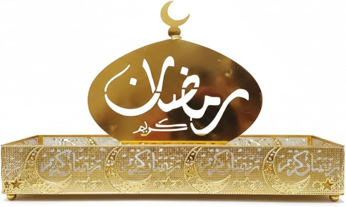 Generic - استاند مزخرف اسلاميخمات عاليه الجوده بلون ذهبى يضيف جو ففال وييجمع بين التراث والأناقة في مساحة مترك على شكل هلال وكتابه رمضان كريم