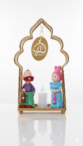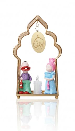 Generic - استاند معدن على شكل رمضانى بداخله مجسمات شخصيات رمضانيه ودلايه رمضان اكريلك بلون دهبى ديكور للمنزل والمكت خمات عاليه الجوده