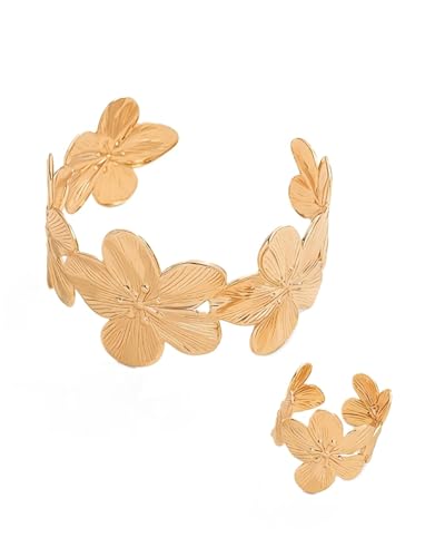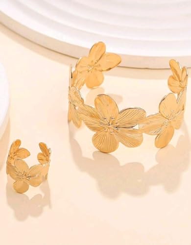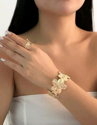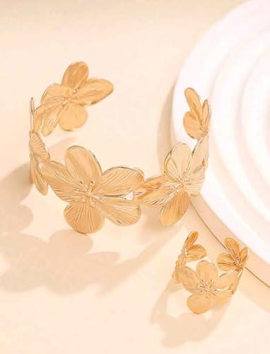 Generic - طقم أسورة وخاتم مفصليين ومزينين بالزهور بتصميم متناسق بسيط وأنيق، مناسب لحفلات المساء للنساء والعطلات