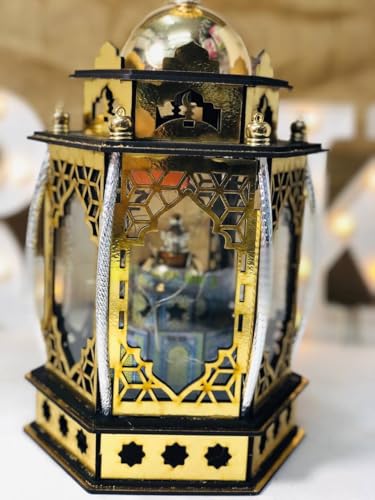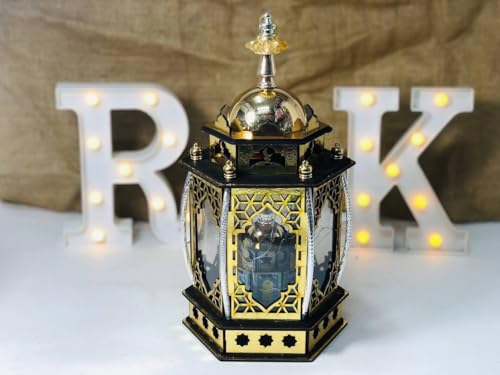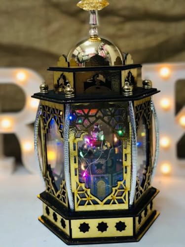 Generic - الفانوس الخشب تقطيع ليزر ممتاز و الانوار اللي في الفانوس و اغاني رمضان فانوس السداسي جامع بالاعمدة المعدن المقاس: 20*33 سم