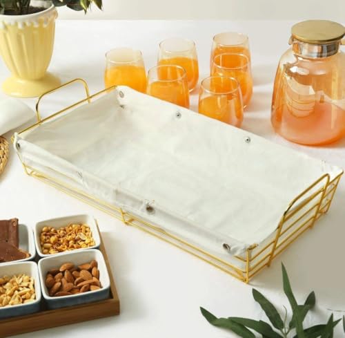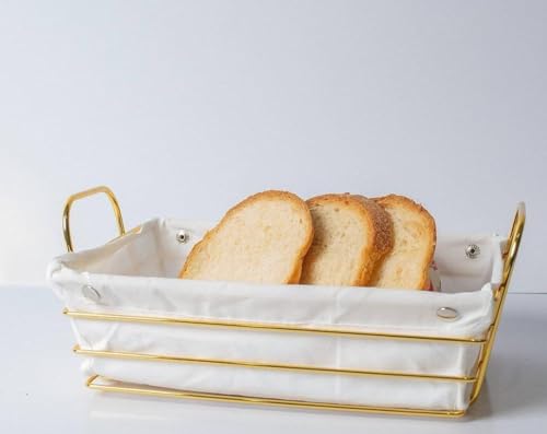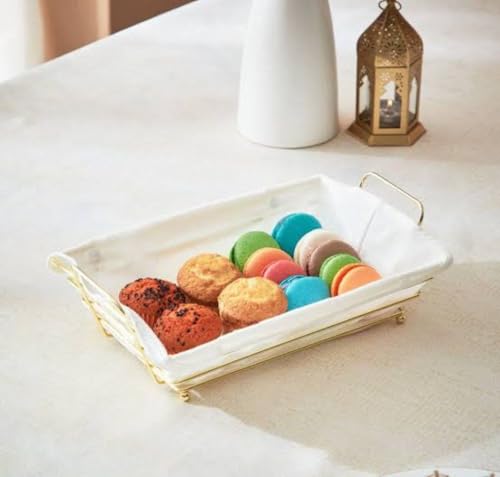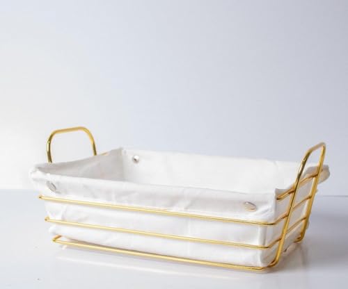 - باسكت عياشه معدن جولد قطعه فنيه على سفرتك وفي مطبخك سبت مستطيل الشكل لتقديم العيش والمخبوزات والفاكهه بيدين لسهولة حمله بكفر كتان مثبت بكباسين يمكن فكه وغسله بسهوله