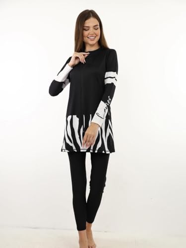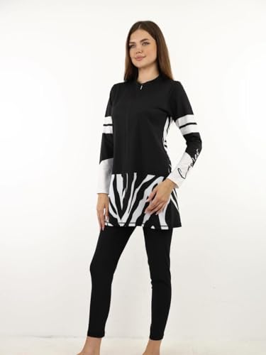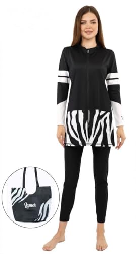 Generic - بدلة حريمي شرعي (بوركيني) خامه ميكس ما بين الوتر بروف والديفينج مكون من أربع قطع (تونيك بسوسته + بنطلون + تربوون + شنطه)