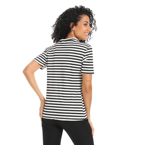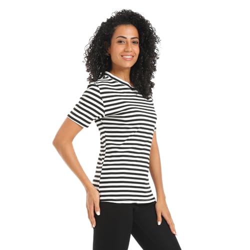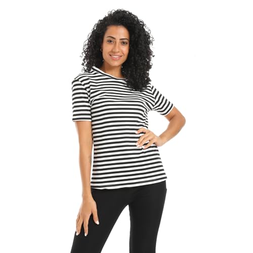 عام - بدي نصف كم مخطط باللونين الأبيض والأسود