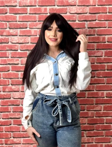 Generic - باروكه شعر مستعار باللون البني طويله ومستقيمه مع غره اماميه قصيره تعطي شكلا طبيعيا ومميزا قابله لاستخدام الحراره مصنوعه من الياف حراريه صناعيه من الفايبر الحراري مزوده بكليبسات داخليه لسهوله اللبس