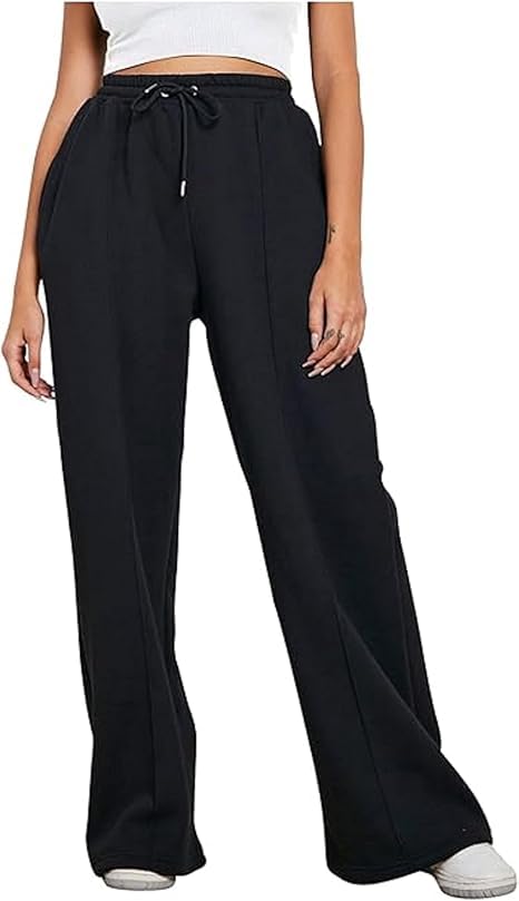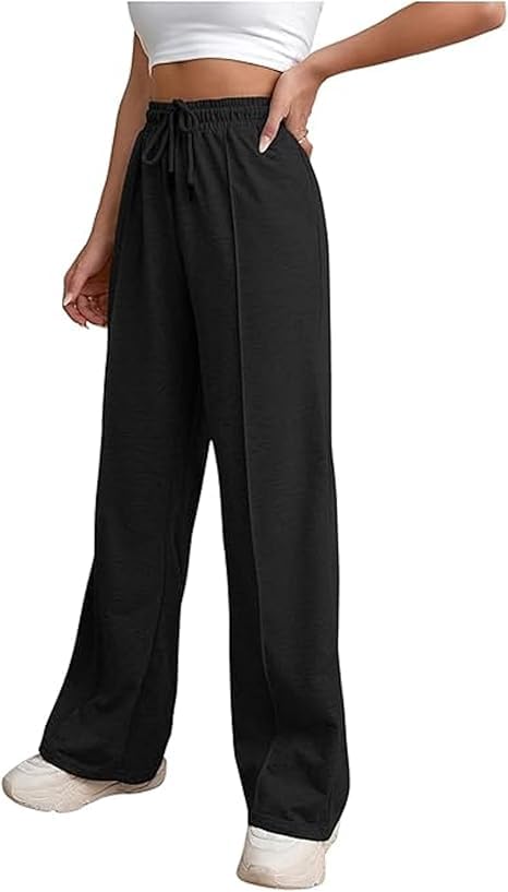 هنادي - بنطلون رياضي نسائي ميلتون بخصر مرتفع مزين بخط ورباط قماش مرن ومريح للاستخدام اليومي والرياضة