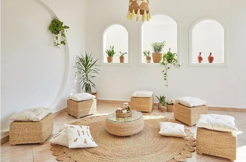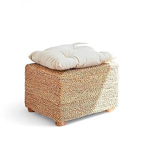 - Stylish Ottoman: This woven seagrass ottoman adds a touch of natural elegance to any living space with its beautiful texture and warm tones.