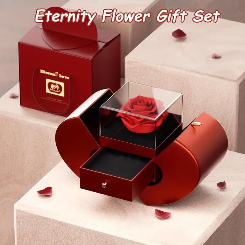 - [أفضل هدية لها] هدية واحدة وظيفتين، تعبر عن الحب ويمكنها تخزين الهدايا والخواتم والقلادات وغيرها من الملحقات. يمكن استخدام الزهور المحفوظة كهدية أحلى ورومانسية لعيد الأم والذكرى السنوية للزفاف وعيد الحب والكريسماس وعيد الشكر وعيد رأس السنة وعيد الفصح وليلة رأس السنة الجديدة وهانوكا وما إلى ذلك.
