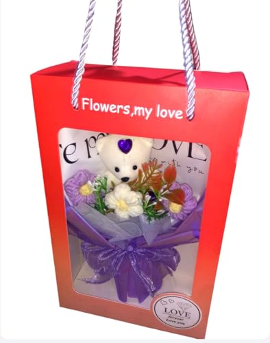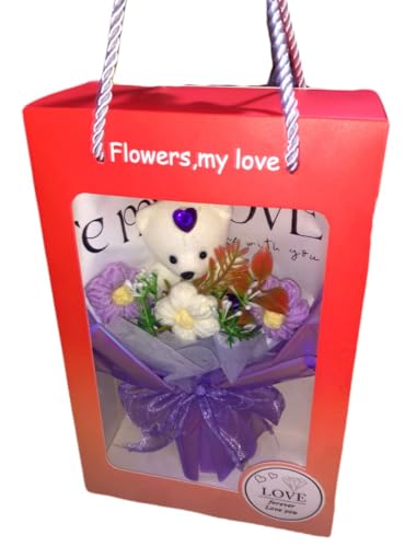 Generic - بوكس شنطة بوكية ورد باقة زهور جمالية ودبدوب هدية لعيد الحب والمناسبات واعياد الميلاد