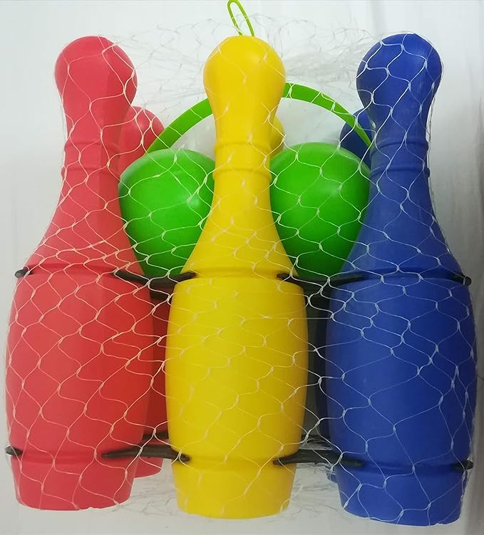 - مجموعة بولينج من 6 عصيان + 2 كرة من البلاستيك للتسلية اختيار الألوان عشوائيا قد تختلف درجة اللون قليلا