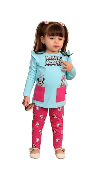 Generic - بيجامه بناتي خريفي تيشرت سماوى وبنطلون فوشيا
