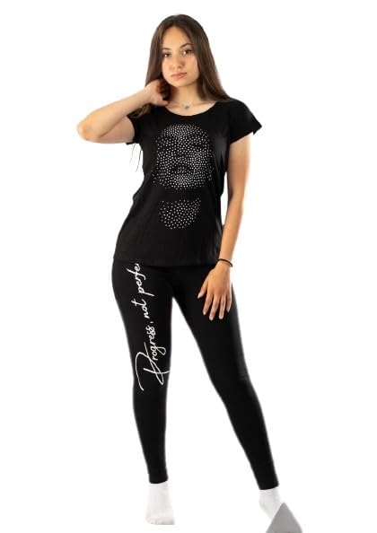 Generic - بيجامه حريمي من قطعتيين تيشرت نص كوم اسود به رسمه وبنطلون اسود