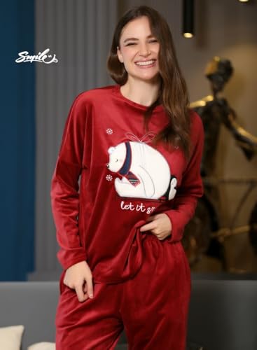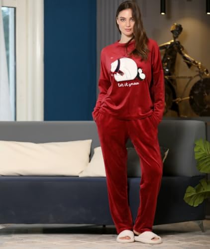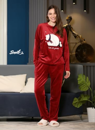 Generic - بيجامة شتوى حريمى قطيفة من قطعتين - بطبه قطبى