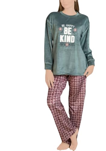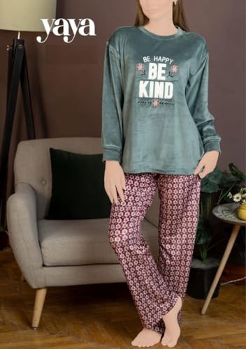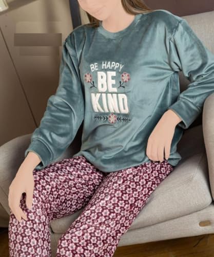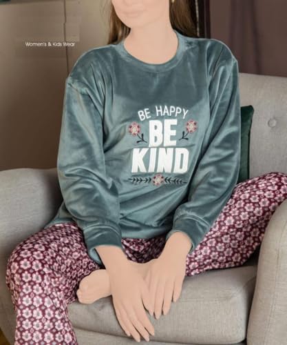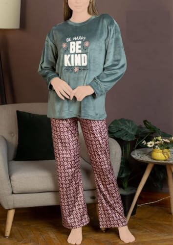 Generic - بيجامة قطيفة حريمي بنطلون وتوب مطبوع ليزر