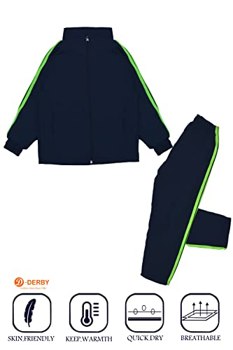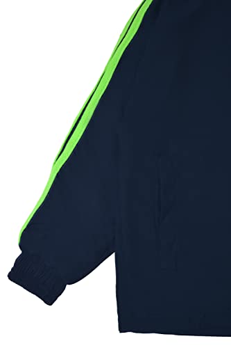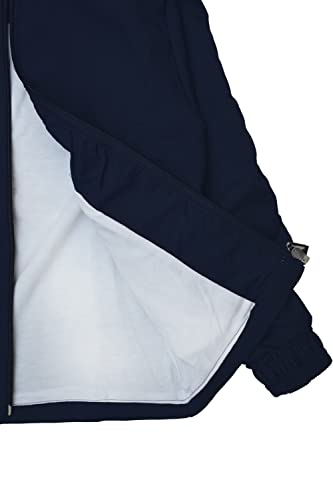 Generic - ترينج رياضي ووتر بروف، طقم رياضي مدرسي شتوي، باللون الكحلي الداكن، بشريط أديداس متعدد الألوان حسب المقاس، مبطن من القماش القطن الناعم، الجاكيت بسوستة وجيوب جانبية، من دي ديربي فاشون ستور.