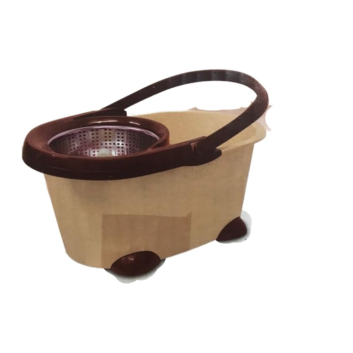 Generic - جردل تنظيف بلاست دلو دوار مصفاة ويد ستانلس (بيج فى بنى)