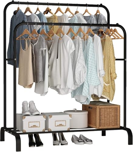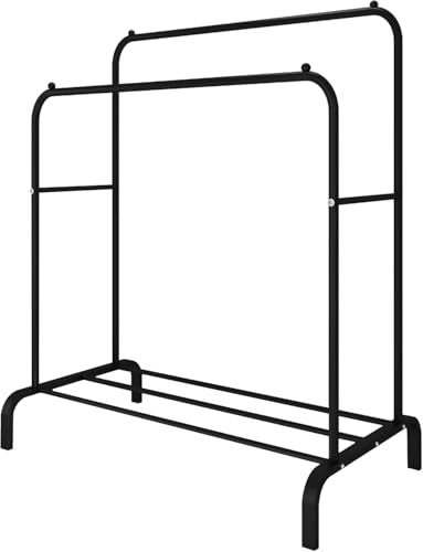 Generic - حامل ملابس مزدوج، حامل معاطف معدني مع رف للأحذية، ومنظّم متعدد الاستخدامات لتعليق الملابس (أسود).