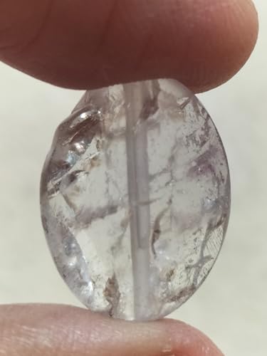 Generic - حجر كوارتز طبيعي شفاف أبيض، قصة الماسية، شكل بيضاوي، مثقوب للتعليق - مميز في موضوع سحب الطاقة السلبية من الجسم - حجر طبيعي تماما - حجم مناسب لعمل خاتم أو دلاية سلسلة وللاقتناء - مناسب للجنسين