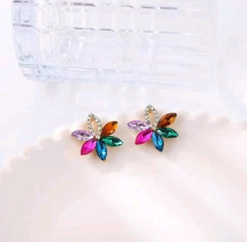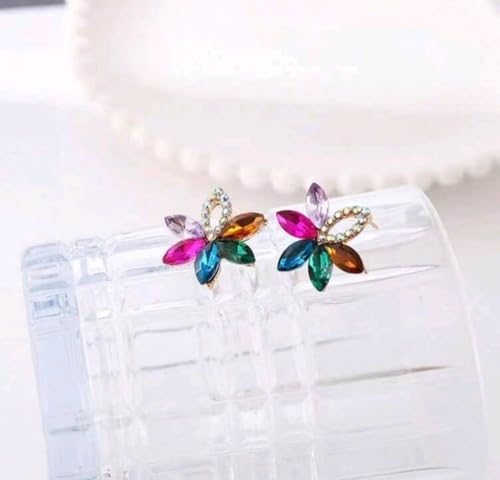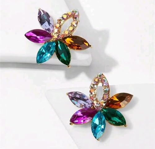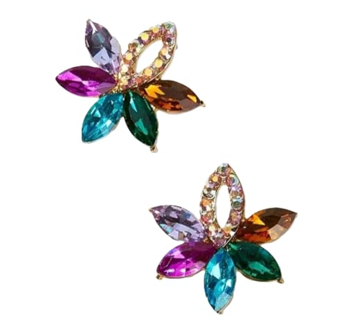 Generic - حلق نسائى ملون زوج من الأقراط المرصعة بالكريستال على شكل زهرة ملونة أقراط أنيقة على شكل زهرة مع أحجار الراين