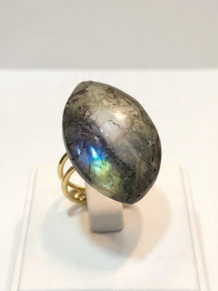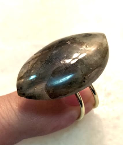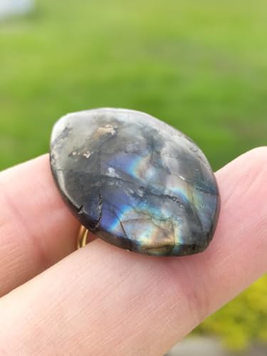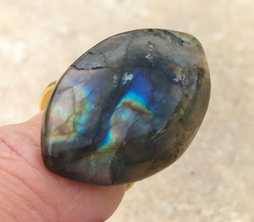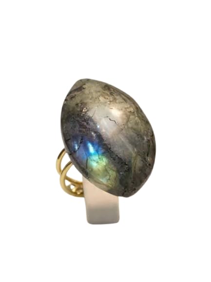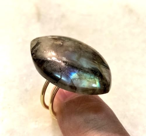 Generic - خاتم مستورد بحجر لابرادورايت الطبيعي الاصلي الكبير (حجر الطاووس) الحجر طبيعي تماما حجم كبير ومميز - يعطي وميض بألوان مختلفة مقاس مفتوح