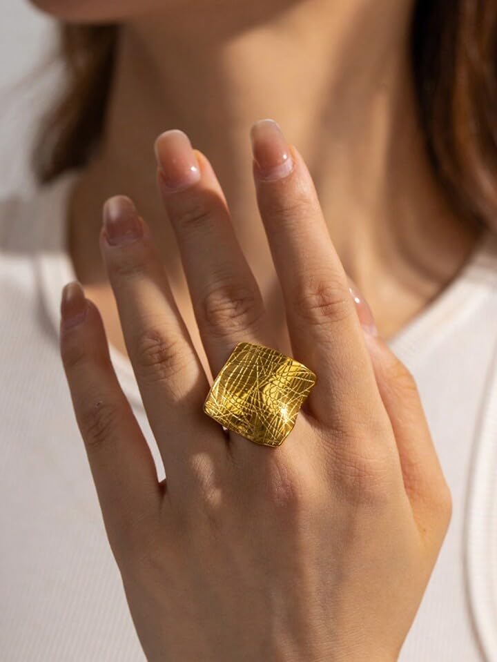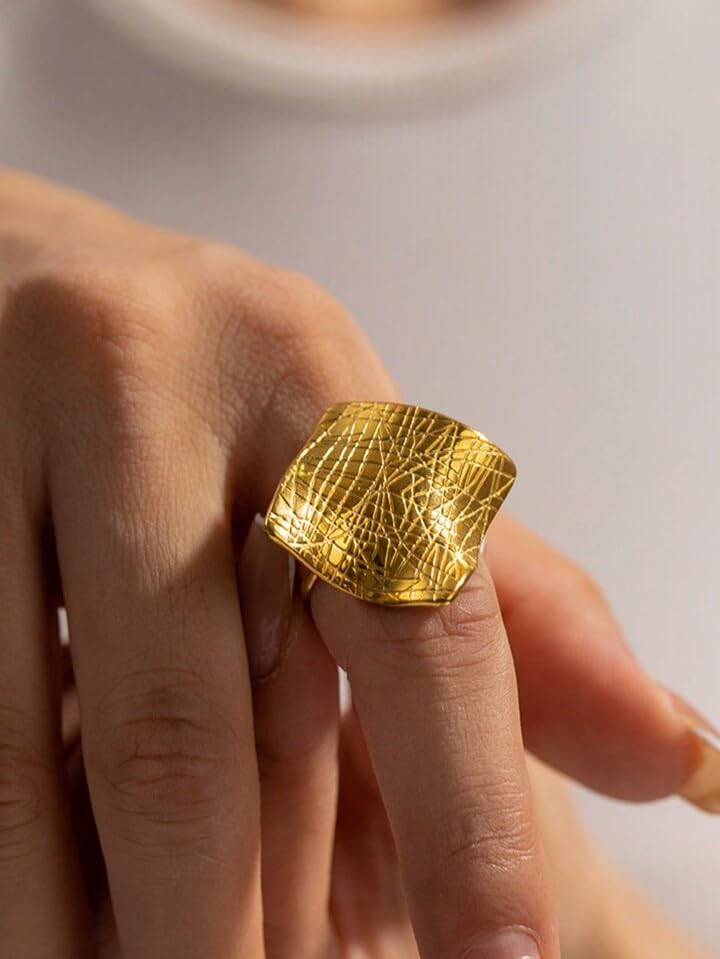 عام - خاتم من الستنلس ستيل مطلي بالذهب مقاوم للصدأ لايسبب الحساسية عالي الجودة اكسسورات للنساء انيقة للمناسبات والهدايا