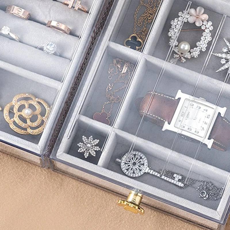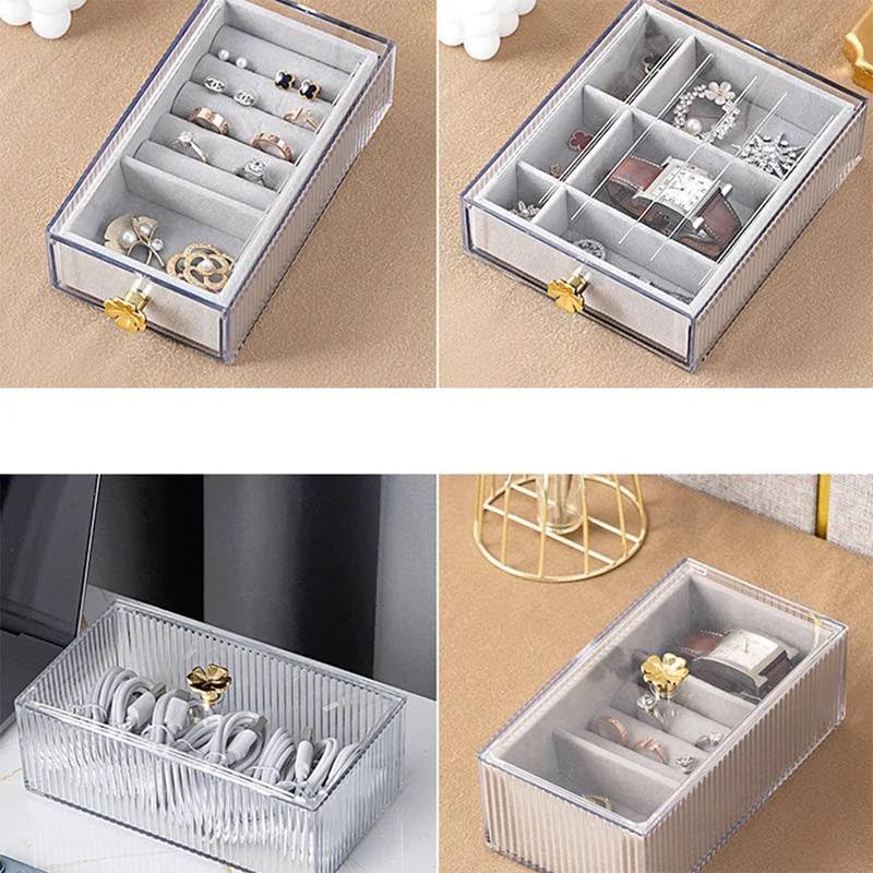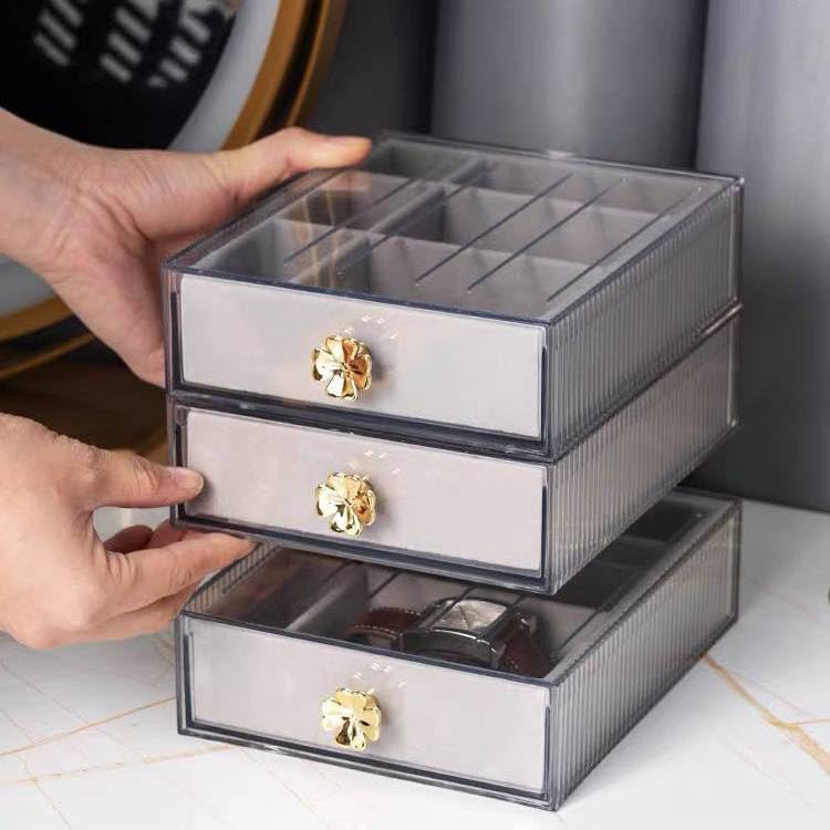 Generic - درج ومنظم بيد ذهبية، مصنوع من الاكليريك مقسم من الداخل بخامة قطيفة، قطعة واحدة، بورسلين، رمادي