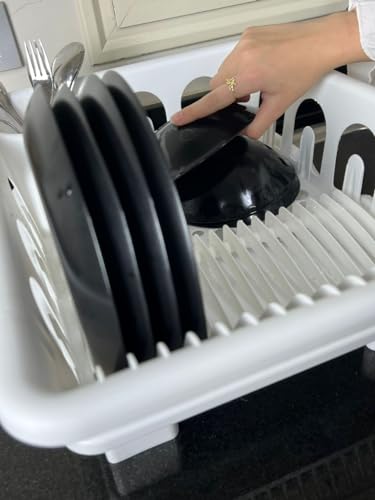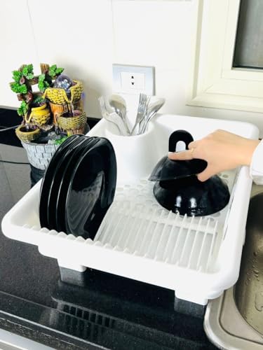 Generic - رف تجفيف أطباق بلاستيكي مع لوح تصريف، أبيض، منظم لطاولة المطبخ مع حامل أدوات