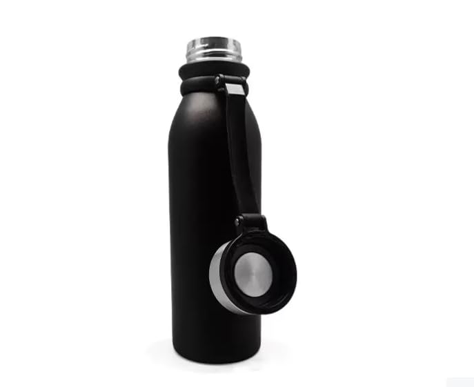 Generic - . زجاجة مياه من الفولاذ المقاوم للصدأ الرياضة واسعة الفم لون أسود مع حبل محمولخمات عالية الجوده مناسب للسفر للرجال والنساء